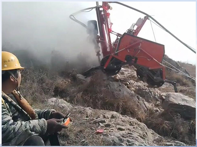 在施工效率上,恒睿遙控爬坡打鉆機表現突出。坡面移動速度達 15 米 / 分鐘,鑿巖鉆孔速度 1 米 / 分鐘,2.5 米深錨桿可一次成孔,避免傳統鉆機多次操作導致的效率低下問題。固定支撐推桿增強平臺穩定性,減少卡鉆風險,保障鉆孔質量。此外,其可作為坡面運輸錨桿錨索的載體,省去吊車臺班費用,還能充當引管注漿平臺,降低人員爬坡勞動強度。