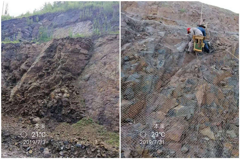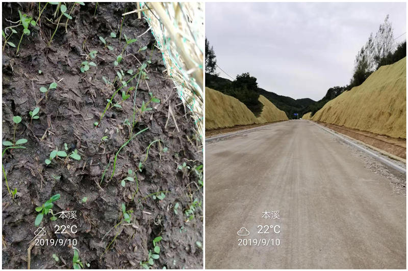 遼寧省本溪市屬于中溫帶溫潤氣候,低積溫地帶,全年平均氣溫6.1-7.8攝氏度,雨量集中在七、八月份?!鞍松揭凰敕痔?,半分道路和莊園”是對本溪地區(qū)多石質(zhì)坡面很好的描述。該工程使用了恒睿客土噴播機配合“纖維骨架團粒結(jié)構(gòu)”專利技術(shù),很好的解決了防雨水沖刷難題,同時噴播的土壤形成蜂窩狀結(jié)構(gòu),保水、疏水作用提供植物生長所需的水份,景繡有機纖維菌肥提供植被所需營養(yǎng)成分,有利于植被生長成坪快。根據(jù)氣候特點科學(xué)地選擇景繡草種,草灌結(jié)合形成自然生態(tài)叢林,打破邊坡綠化行業(yè)內(nèi)“一年綠,兩年荒,三年死光光”的整體現(xiàn)狀。恒??屯羾姴ピO(shè)備、噴播技術(shù)和噴播綠化效果得到客戶地認(rèn)同!