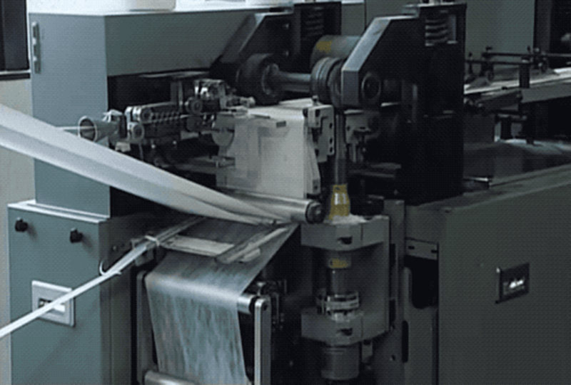 1、將三層無紡布原料經(jīng)過機器疊合在一起