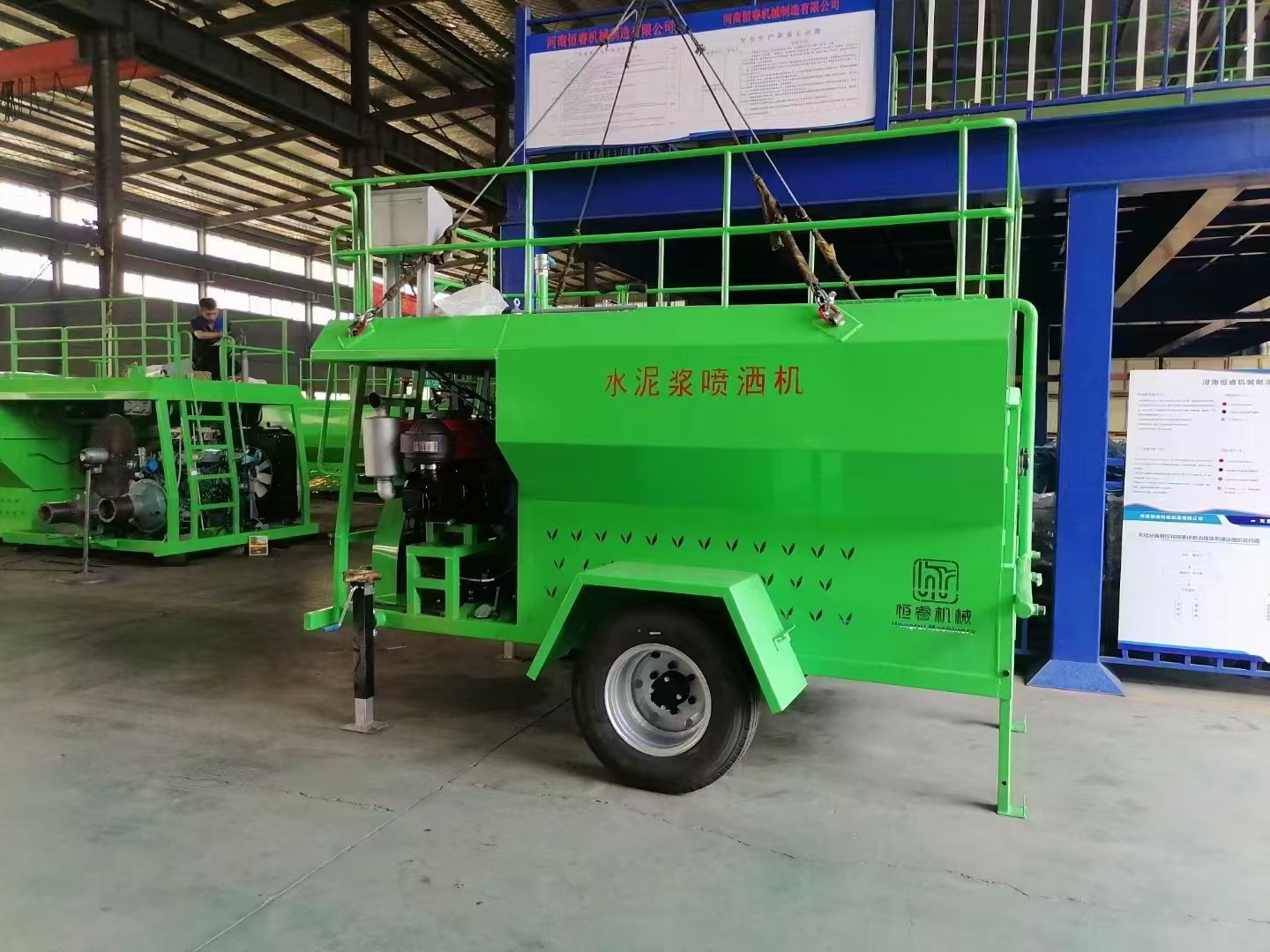 恒睿水泥漿噴灑機噴射均勻,速度快,通過特制槍頭扇形噴灑,不易堵塞,可選牽引式、車載式兩種移動方式。