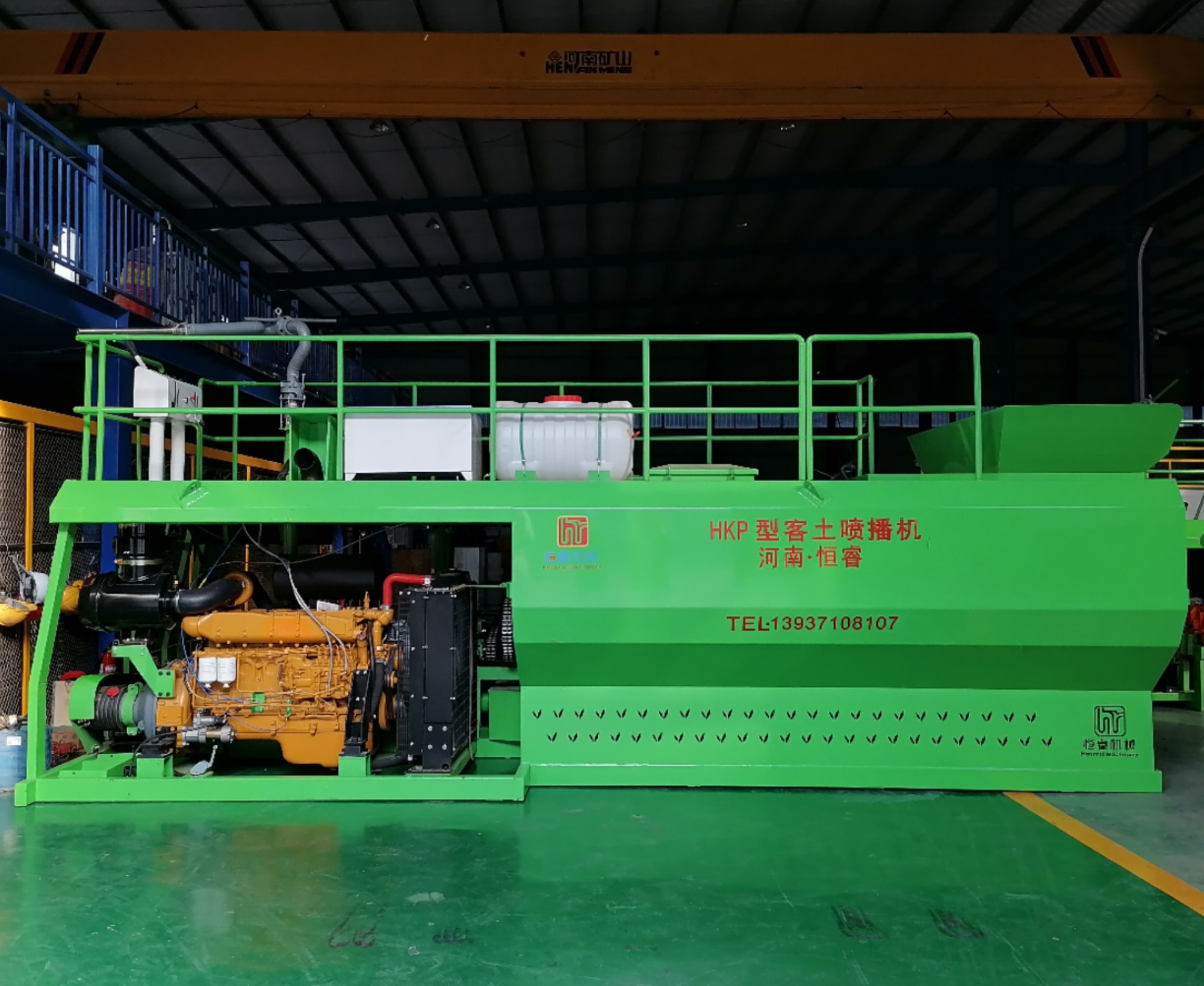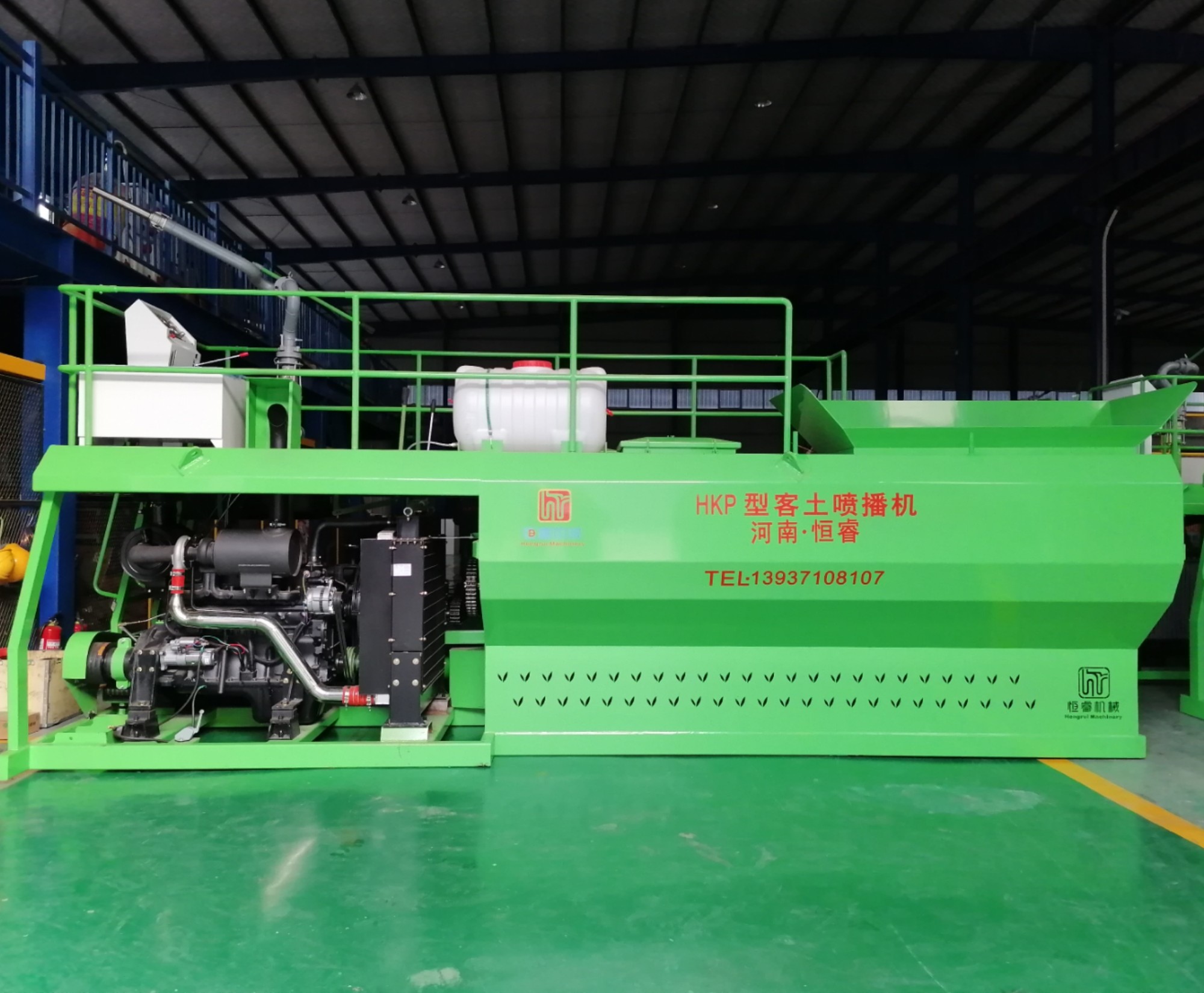 客土噴播機是應用于邊坡綠化的設備,通過本設備將土壤基質、綠化草籽、保水劑、黏合劑、肥料等,在噴播機攪拌罐中與水混合成膠狀的漿液,用高揚程多級增加濃漿泵將其噴播于坡面上。由于漿液中含有保水材料、黏合材料、各種養分,在保證了植物生長所需的水和其它營養物質來源的同時防止雨水沖刷對噴播材料的破壞,故而植物能夠健康、迅速地成長。