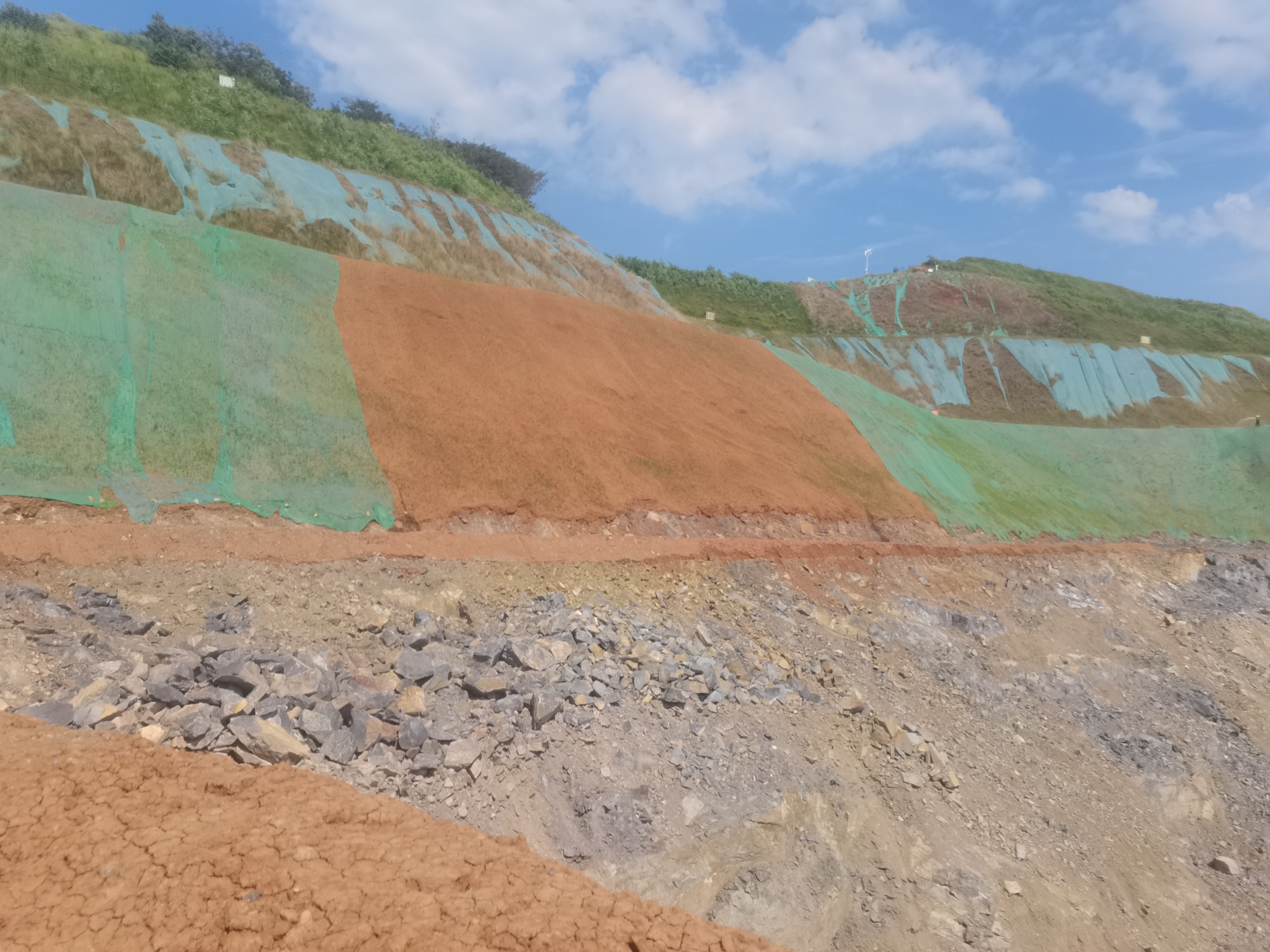 生態(tài)海綿土壤成型劑,與表層營養(yǎng)基質(zhì)層反應(yīng)后,能很快形成生態(tài)海綿土壤結(jié)構(gòu),具有很好的保水、吸水、透氣性,在不覆蓋無紡布/遮陽網(wǎng)情況下,可對坡面提供長久(6個月)抗沖刷防護,有效降低多雨季節(jié)施工,因強降水對坡面造成沖刷,導(dǎo)致噴播綠化失敗的幾率,大大減少因雨水沖刷導(dǎo)致的補噴損失。